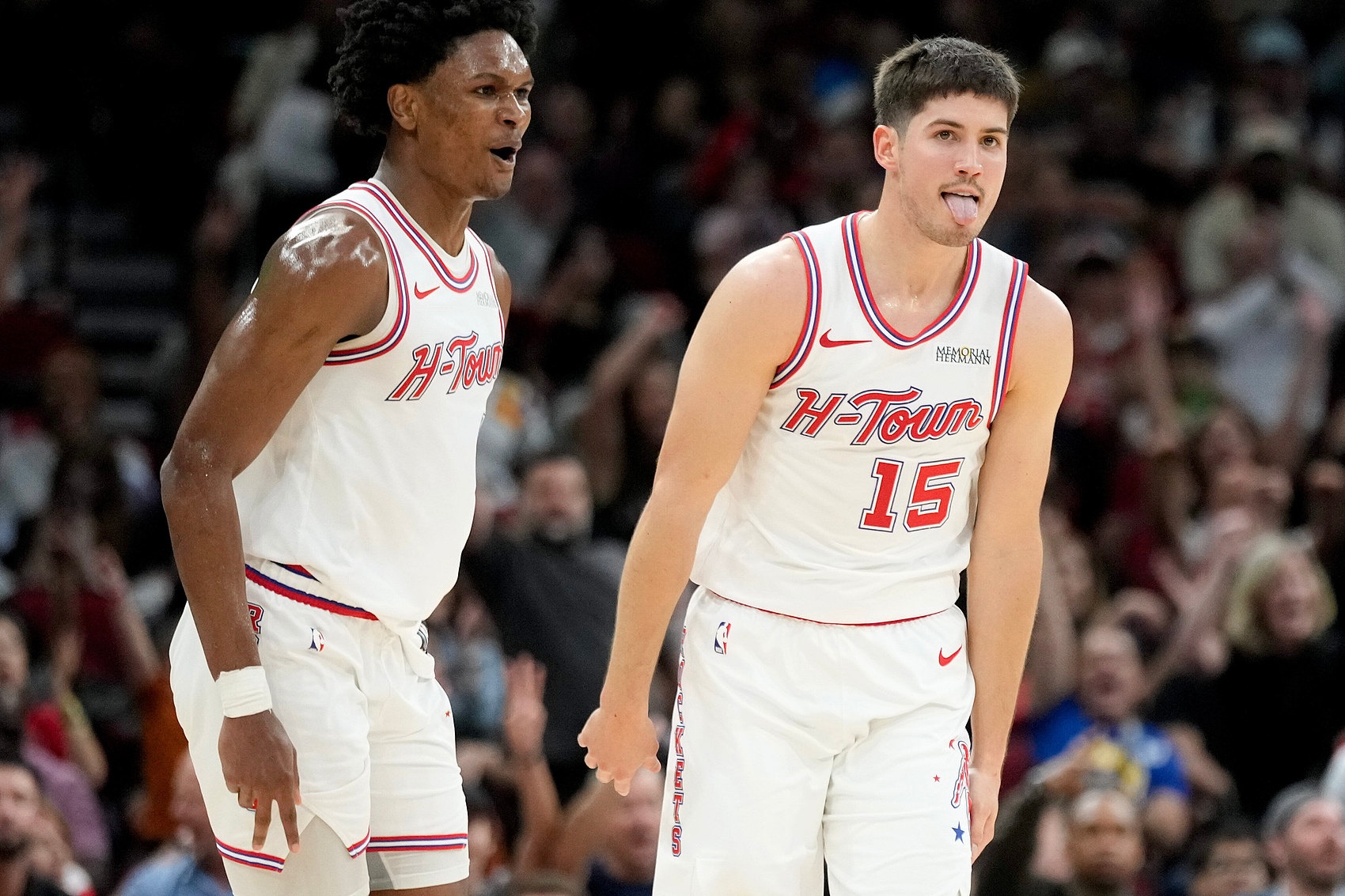 火箭没有首发级别的真正控卫,并且申京/饼皇+阿门在首发和衔接段大量时间两两组合在场,这也导致了火箭场上空间不好以及在拥堵空间里传接球质量不高,大量回合出现离谱的低级失误